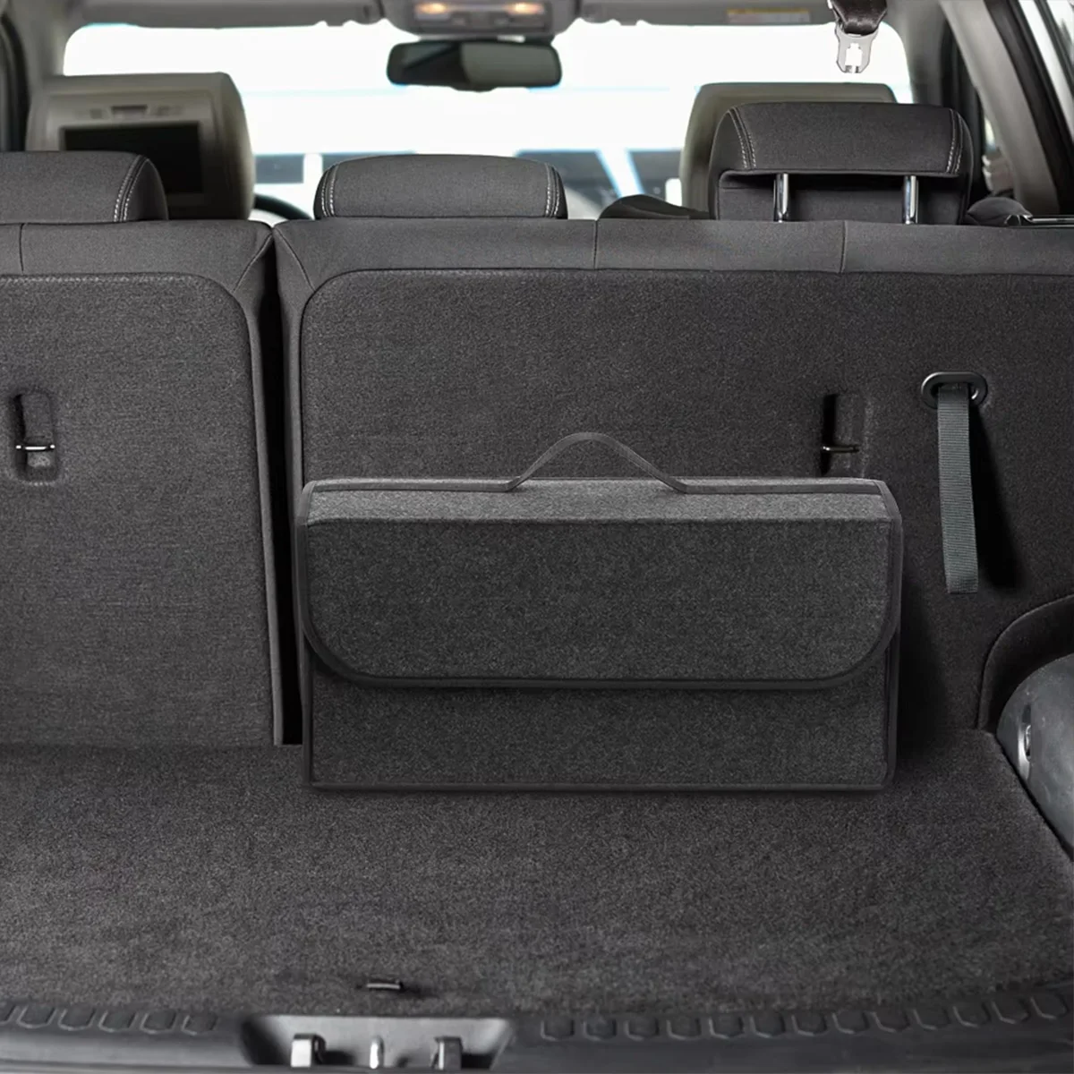 The Dark Gray Felt Car Storage Box is a stylish and practical solution for keeping your car or home organized. Made from high-quality thickened soft felt material, this storage box is both durable and lightweight, offering excellent flexibility and structure. Its enlarged capacity design provides ample space to store groceries, tools, emergency kits, cleaning supplies, or everyday essentials. The soft yet sturdy felt construction prevents scratches to your car’s interior while maintaining shape even when fully loaded. Designed with reinforced edges and handles, it’s easy to carry and move around as needed. Ideal for placement in your car trunk, rear seat, or home closet, this versatile box serves both automotive and household storage needs. The dark gray color adds a sleek, minimalist touch that complements any interior style. When not in use, it can be folded flat for convenient storage, saving space while maintaining functionality. Perfect for anyone seeking a clean, organized, and clutter-free car or home environment.